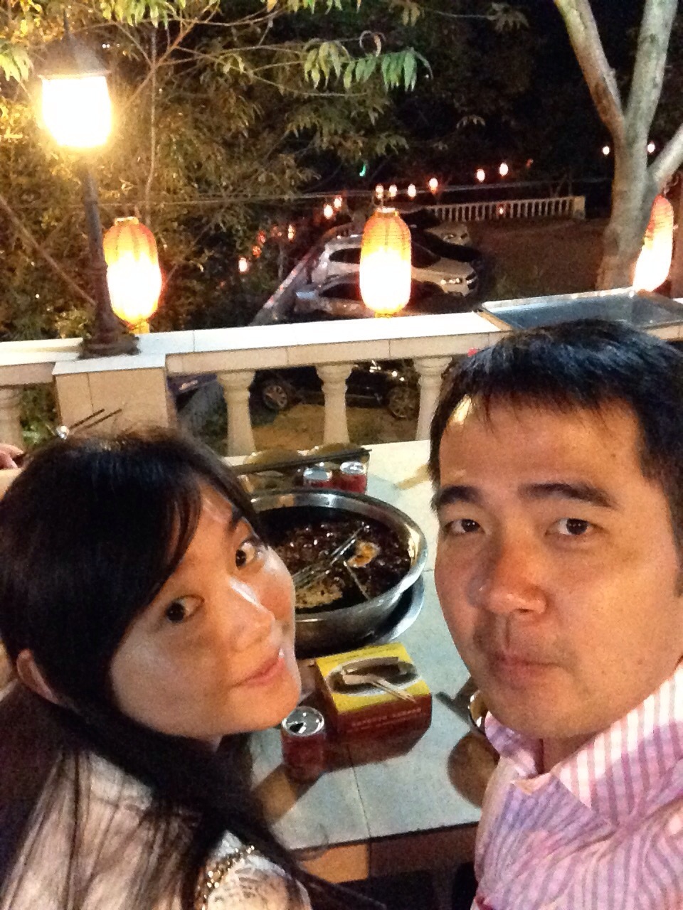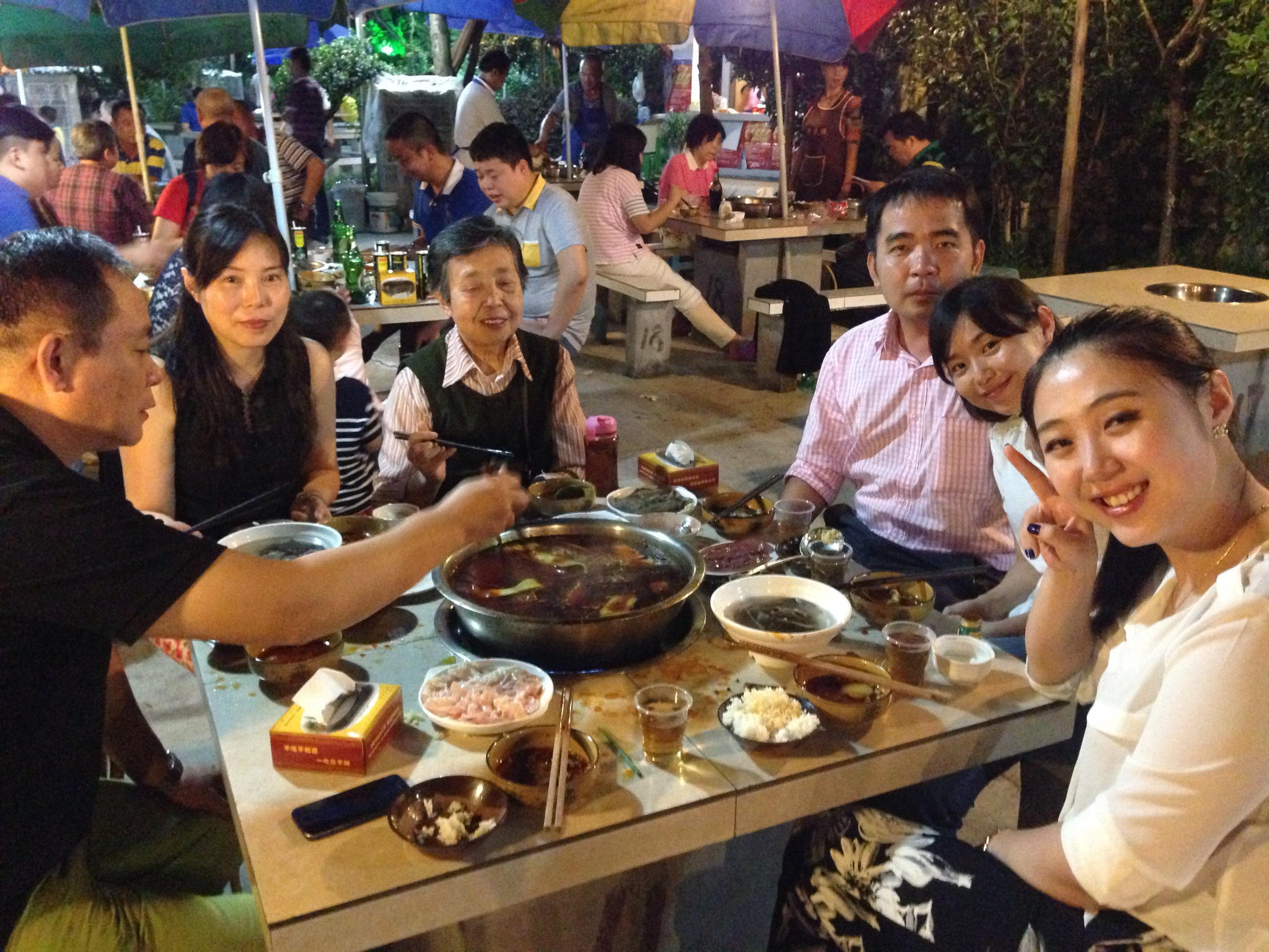 Then, we went to 南山 to eat 正宗的重庆火锅!This part, I must describe in greater details. The place is situated at the middle of a mountain. The tables are arranged outdoors. There are 2 rows (maybe more) of tables situated at different height of the mountain, with some sited inside a 亭子。The tables are made of concrete. Functional, nothing fanciful. It is in the shape of a square, with 2 people on one side. The food is delicious, with a lot of exotic ingredients that I can’t name now without honey’s help.