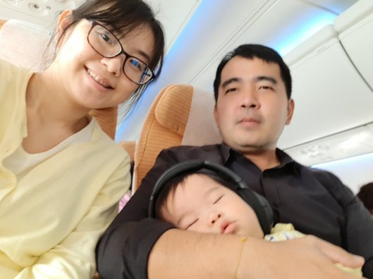 4个半小时的飞行, 小米米睡了1个小时。。我们已经是谢天谢地了😂 其他时间就轮流配他玩。。