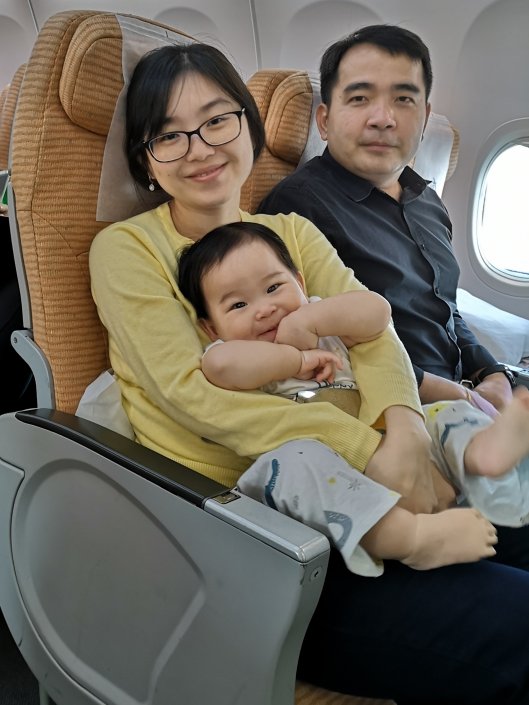从定机票开始, 首先我们选择的是非常baby friendly 的 新航。带2岁以下的宝宝,需要提前通知新航,他们会安排我们坐最前面的一排,飞机起飞后,相对平稳时,宝宝会有自己的睡篮。 后来证明这是正确选择,空姐空少非常友善,给我们玩具,还有宝宝食物, 小米米喜欢美女,一直拉着姐姐手不放😅