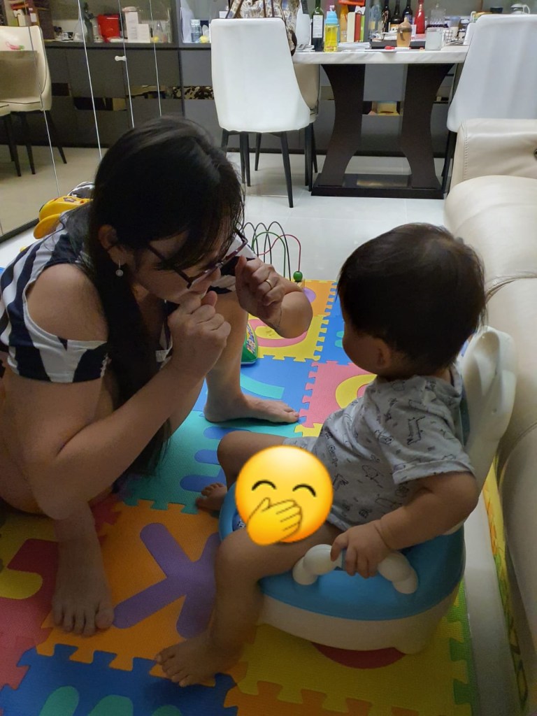 先是爸爸抱, 再妈妈抱。。再爸爸抱。。我们都运动了.